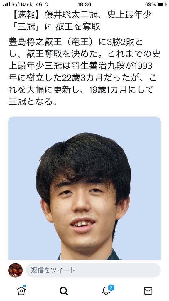 65 アシクロビル(東京都) [US] :2021/09/13(月) 18:54:29.78 20年後豊島は藤井相手に唯一フルセットまで持ち込んだ人として崇められてる(´・ω・`)